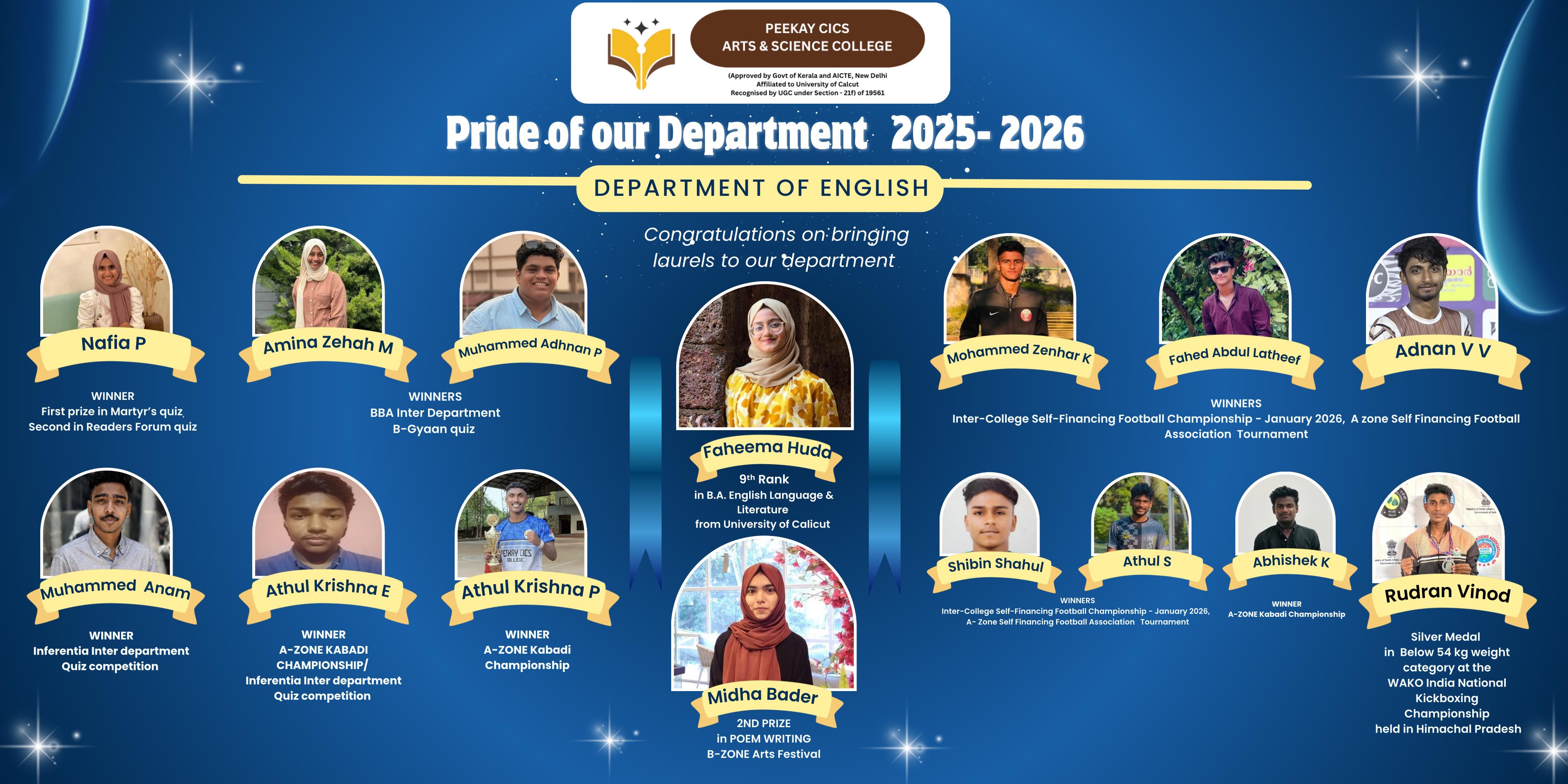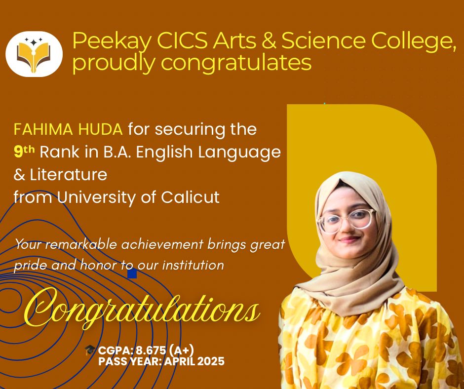 Peekay CICS Arts and Science College a self- financing college affiliated to the University of Calicut recognised by AICTE, New Delhi was established in 2013 by the Calicut Islamic Cultural Society (CICS). The college offers undergraduate and postgraduate programs in Arts, Science, and Commerce.