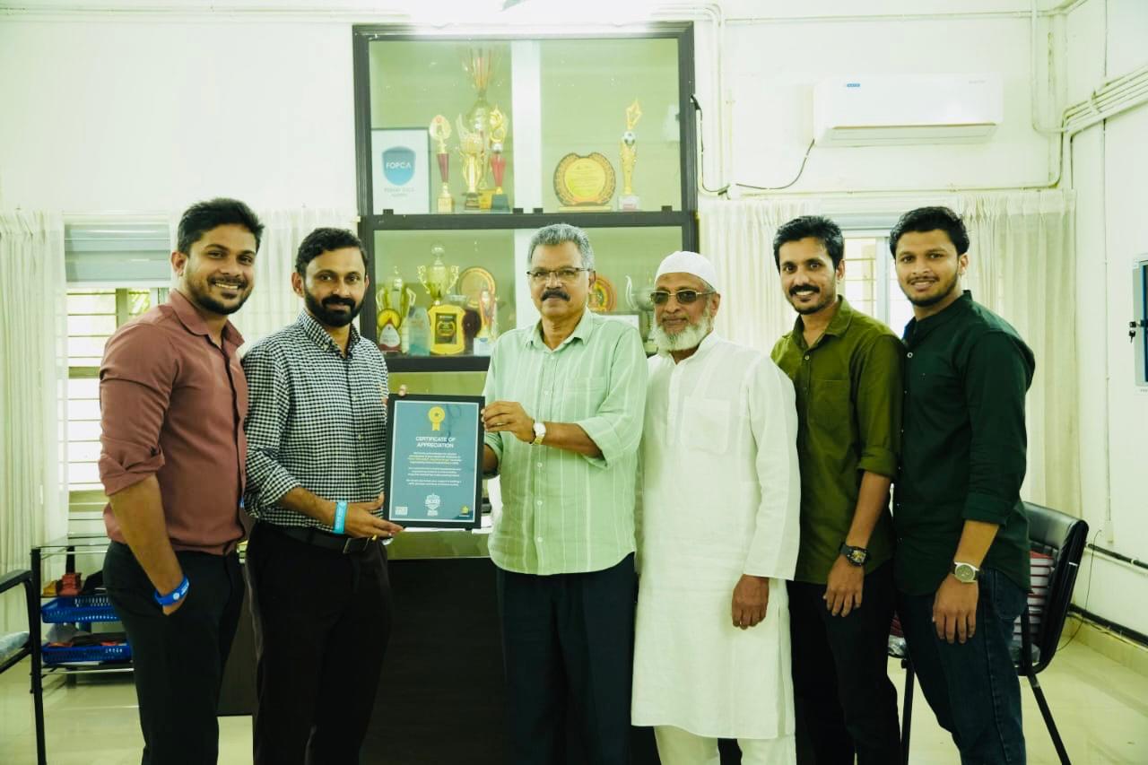 Certificate of Appreciation from Club FM and Calicut FC received for the active participation of our college in the Anti-Drug Campaign – Kick the Habit. Together, we stand for a drug-free future.