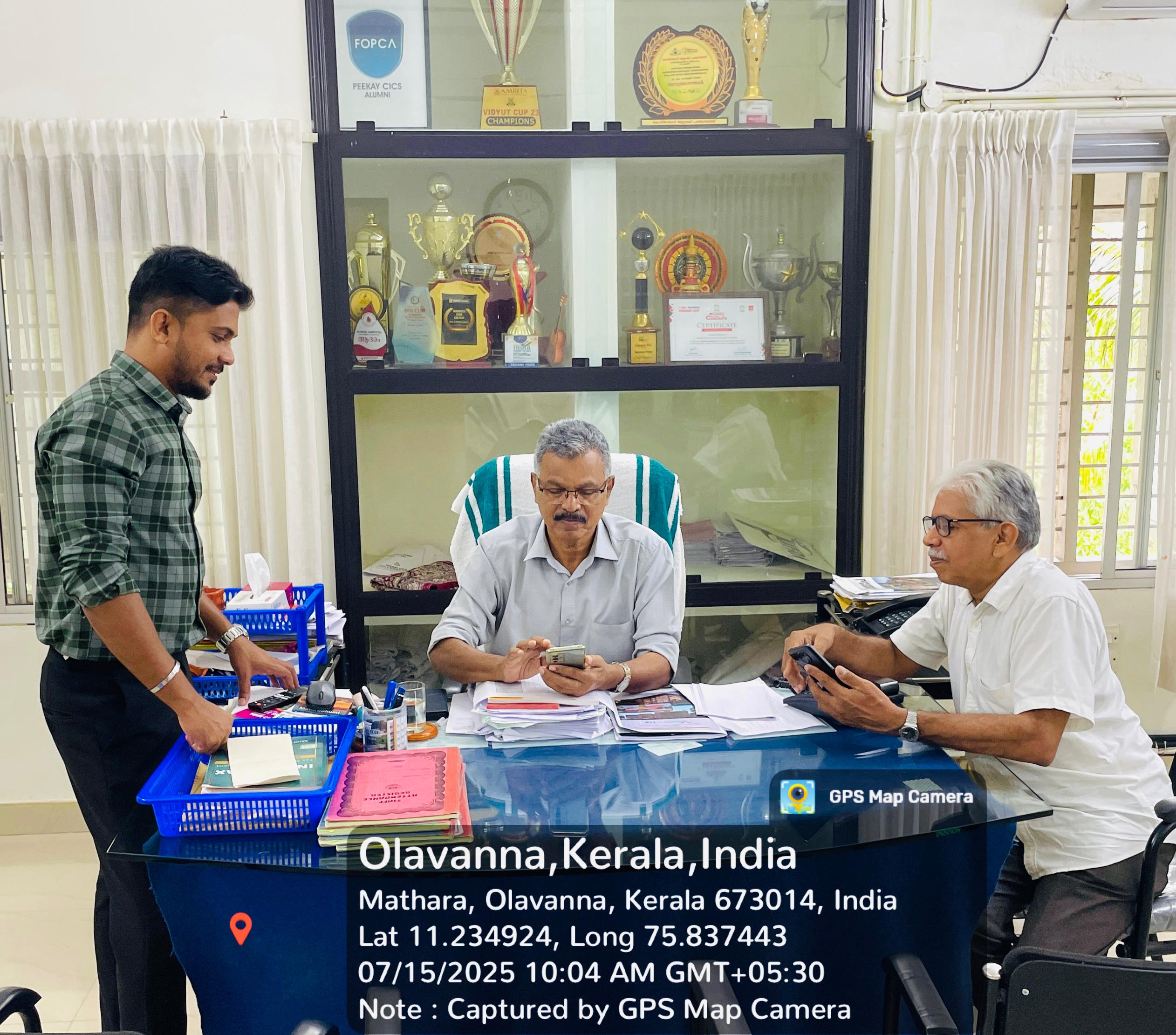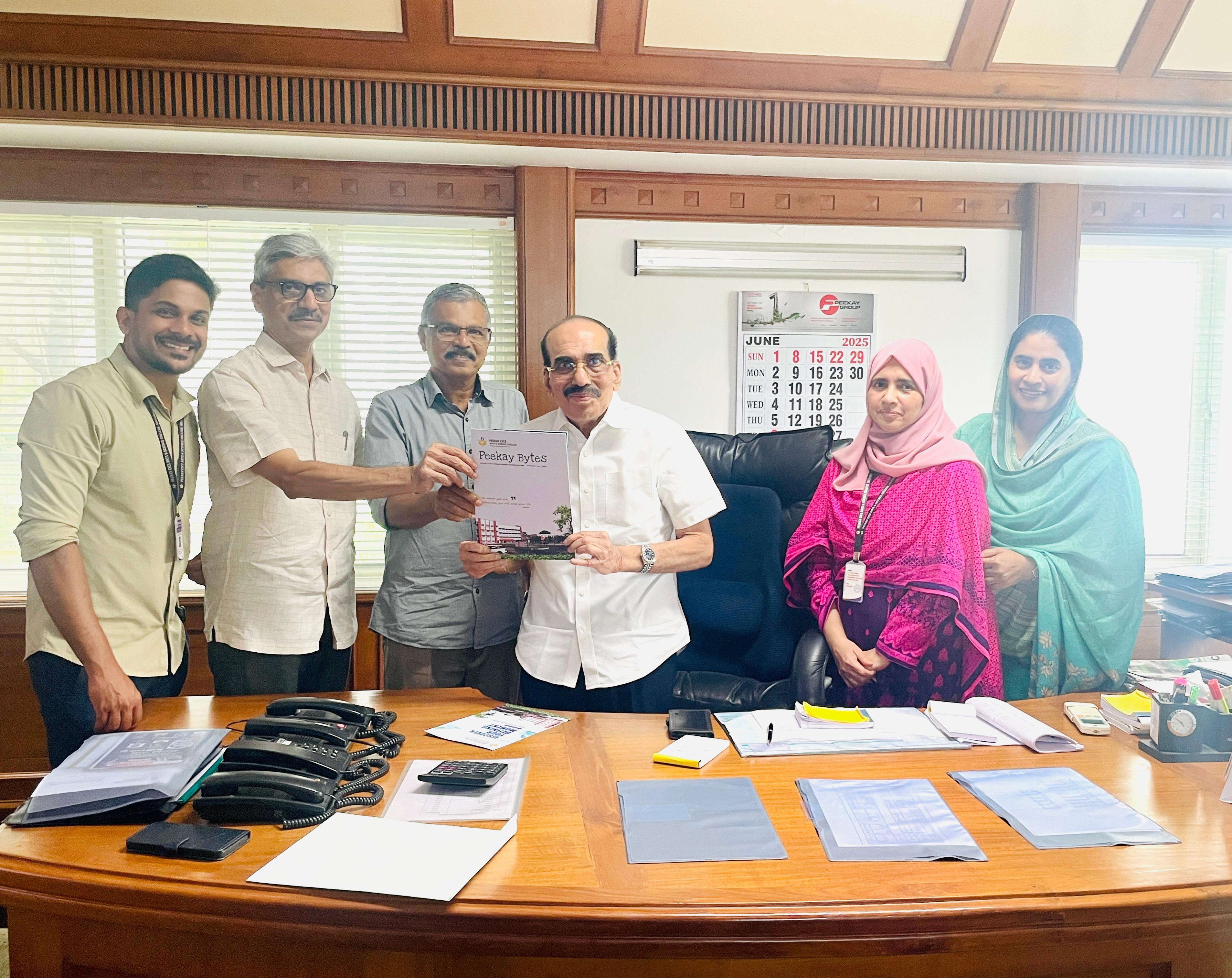 The newsletter Peekay Bytes, issue 2, officially released by the Chairman,P.K.Ahmed Saheb at his office in the presence of the Principal Prof.A.Kuttialikutty,Mr. M.Ayub ,Secretary and the editorial team comprising Mr.Sudhin,Ms.Saira Banu and Ms.Jazeera.