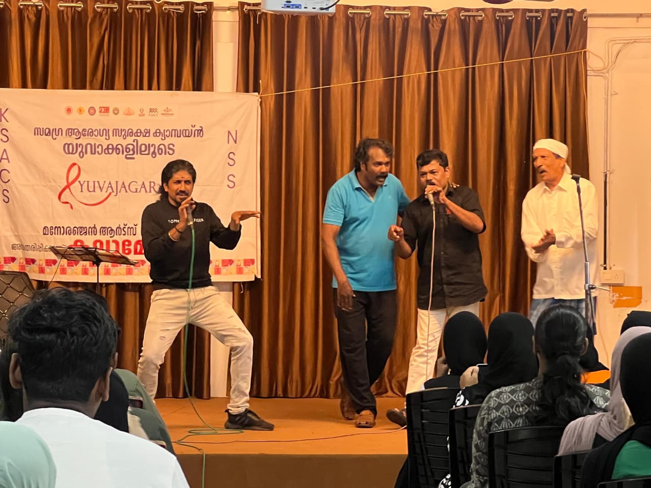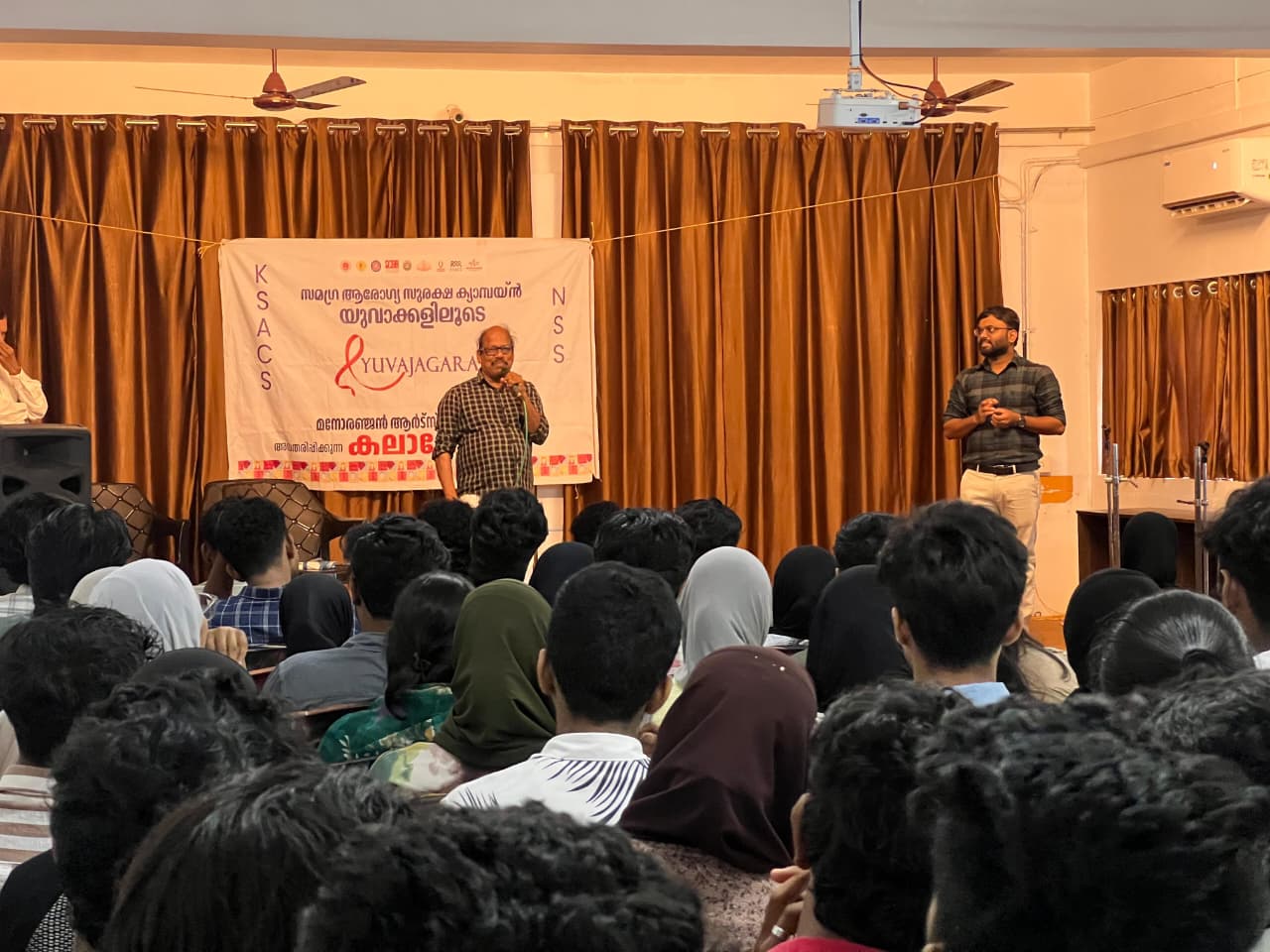 The NSS Unit of our college organized a Kalamela named YUVAJAGARAN in collaboration with the Kerala State AIDS Control Society (KSACS) with the aim of spreading awareness about HIV/AIDS among the student community. The programme was inaugurated by Dr. A.P.M. Rafeeq, Head of the Department of Psychology. The event was facilitated by teachers Muhammed Murshid T and Shajal, whose presence and guidance contributed greatly to its smooth conduct and success. A major attraction of the programme was the performance by the renowned art team “Manoranjan Arts”, who presented songs, skits, and mimicry with powerful social messages. Their well-crafted presentations effectively highlighted the importance of awareness, prevention, and compassion towards people living with HIV/AIDS. The skit performed by Manoranjan Arts depicted realistic situations, breaking the myths and stigma surrounding the disease, while the mimicry and musical items engaged the audience in a lighter but equally meaningful manner. The entire programme succeeded in delivering critical information in a creative and memorable way. The event was received with great enthusiasm and appreciation by students and faculty. It stood out as a fine example of how art and culture can be used as effective tools for social awareness and change.