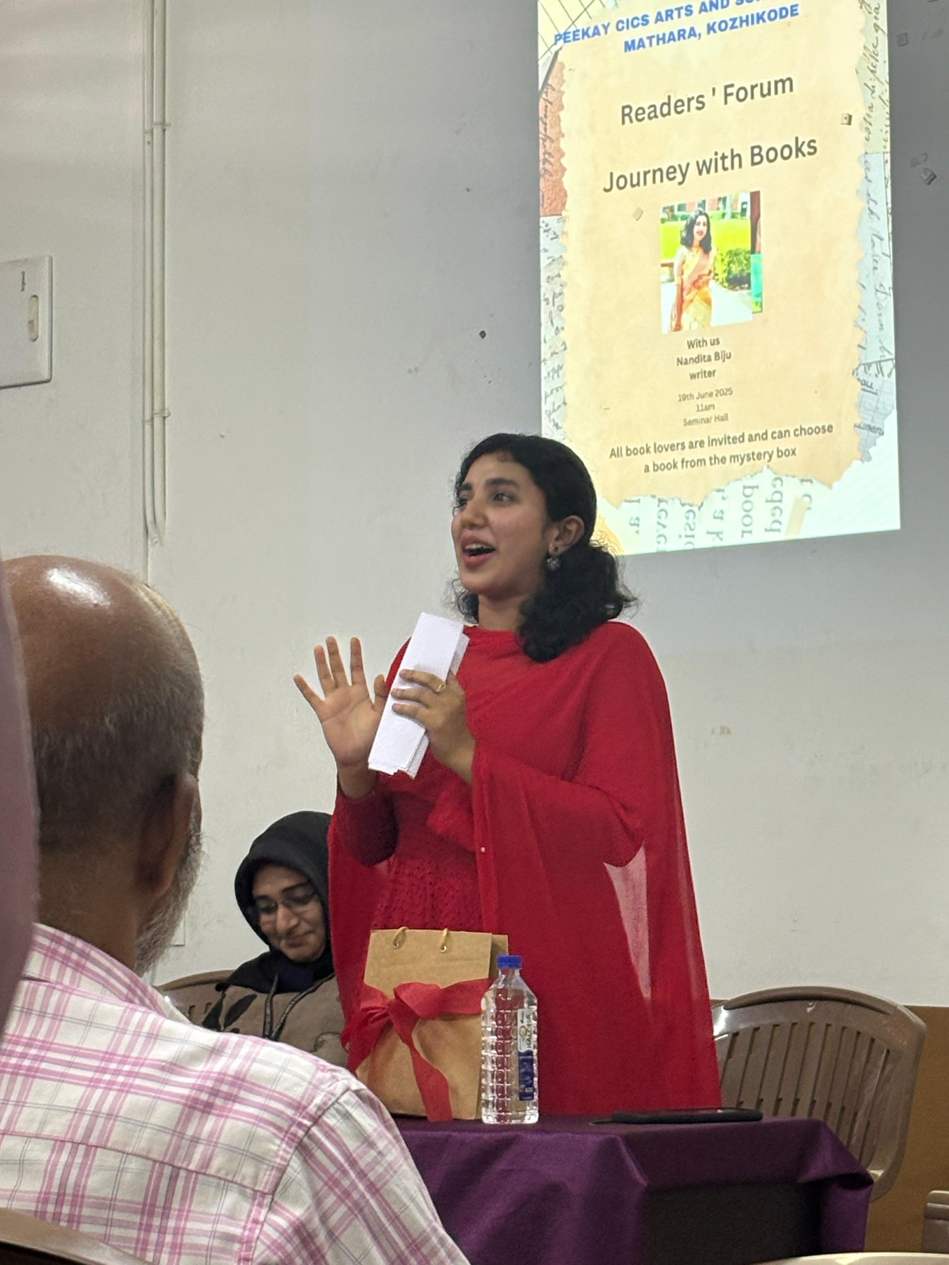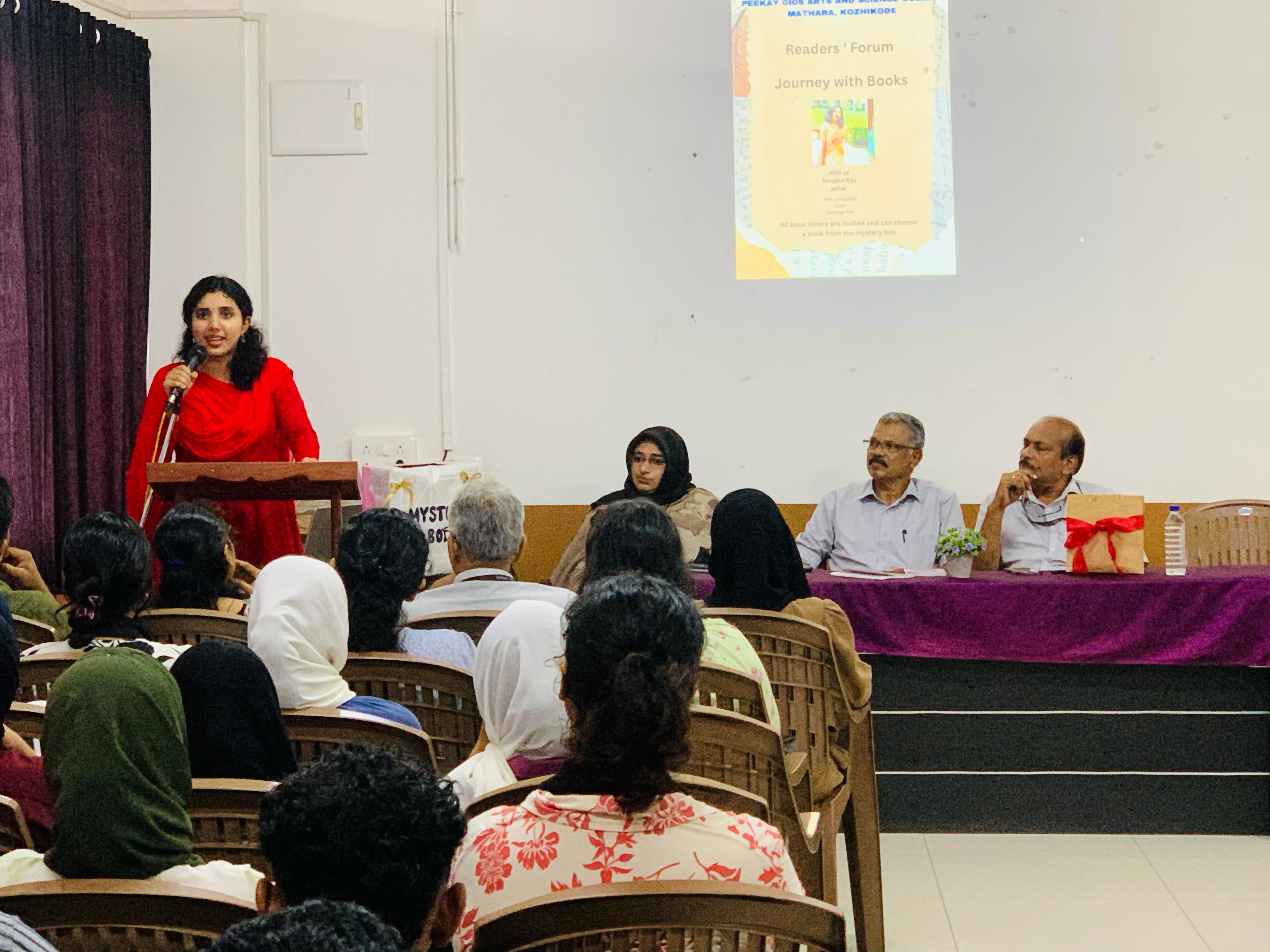 The Readers' Forum celebrated National Reading Day on June 19th, paying tribute to P.N. Panicker, the pioneer of Kerala's literary movement. The event featured a book review competition, followed by a talk from emerging writer Ms.Nandita Biju, who shared her writing journey. Principal A. Kuttialikutty and Ms. Siru Razzak highlighted the significance of Reading Day. The programme concluded with attendees selecting a book from a mystery box, fostering a love for reading.