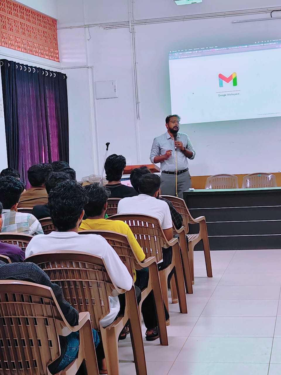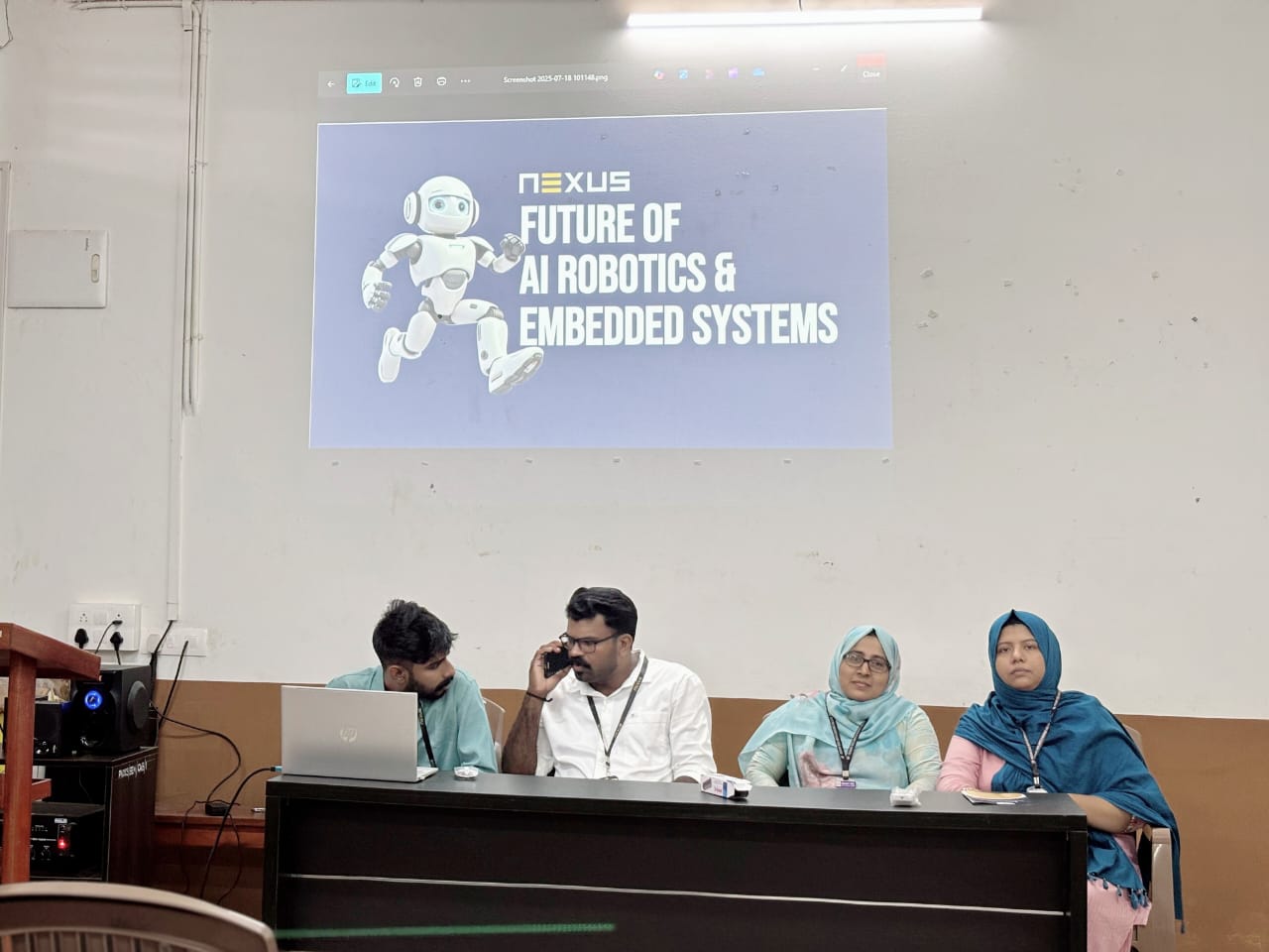 The Department of Computer Science organized a seminar titled "Future in AI, Robotics & Embedded Systems" on 18th July 2025 at 10:00 AM .The session was led by Mr. Nikhil P, Technical Head at Nexus Technologies, who delivered an insightful talk on the emerging technologies and future career prospects in the domains of Artificial Intelligence, Robotics, and Embedded Systems. The seminar also highlighted academic project opportunities in these cutting-edge areas, providing students with practical insights into real-world applications. Final year BCA and BSc Computer Science students actively participated in the session.