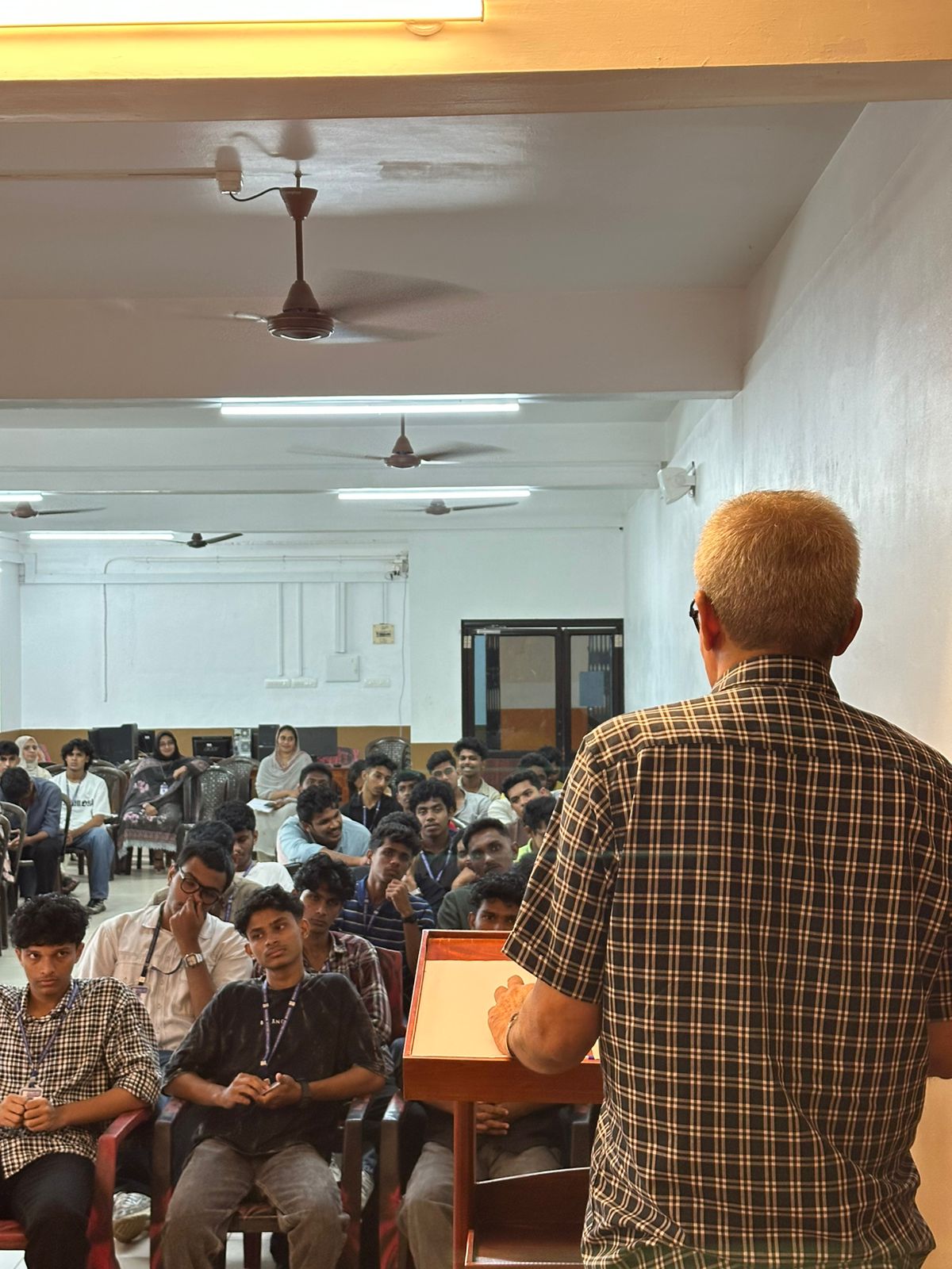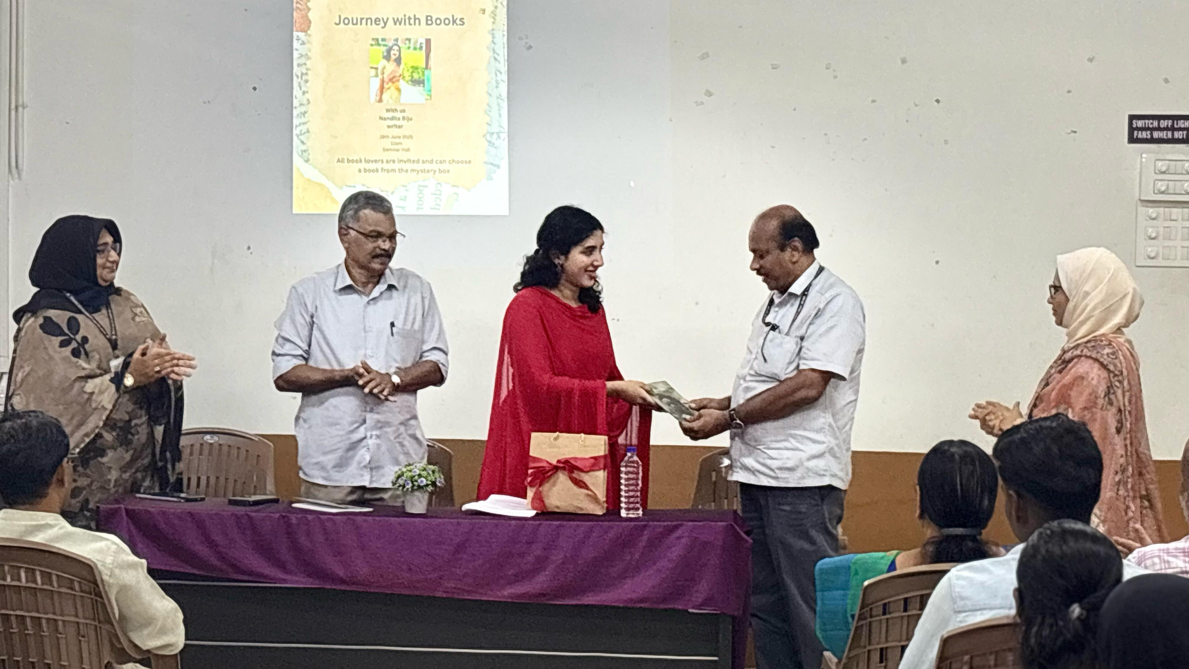 The second-year Commerce students had the rare and enriching opportunity to interact with Dr. N.P. Hafiz Muhammed, the acclaimed author of The Big Fish on 23 rd July 2025. In the session, Dr. Hafiz Muhammed shared his journey into the world of writing, his inspirations and real-life experiences that shaped each of his stories. The session was highly interactive, with students posing thoughtful questions and receiving valuable perspectives on literature, creativity, and storytelling. It was a memorable event that not only brought the author closer to his readers but also inspired many budding writers in the audience.