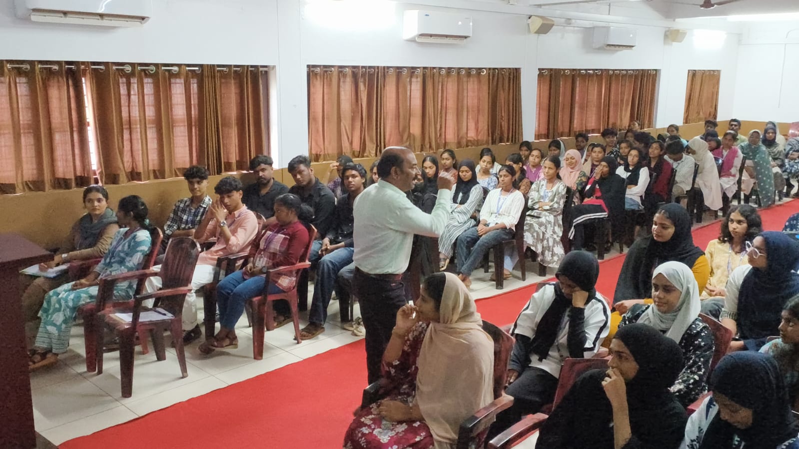 The Department of English hosted an insightful seminar titled "Ways to Enhance Your Quality of Life" for first-year BA English students. The event, led by Dr. Mohammed Rafeeque A.P.M from the P.G Department of Psychology, provided a valuable opportunity for students to explore self-understanding and career alignment.