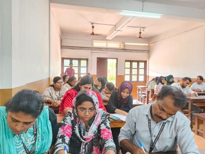 A Faculty Development Programme 'Fostering Creative Pedagogy' was held on 10th June 2024. Mr.M.Noushad ,a renowned trainer and writer, was the resource person who offered invaluable insights into creative pedagogy.The orientation programme was attended by the Principal ,staff, and the office staff. It featured sessions on understanding creative pedagogy, innovative teaching techniques, designing engaging learning experiences, and fostering collaboration. Participants engaged in interesting activities related to emotional aesthetics, enhancing their understanding of how emotions influenced learning. They gained a deeper understanding of creative pedagogy, acquired new teaching methodologies, and fostered a collaborative environment. The programme reaffirmed the college's commitment to academic excellence and continuous professional development.