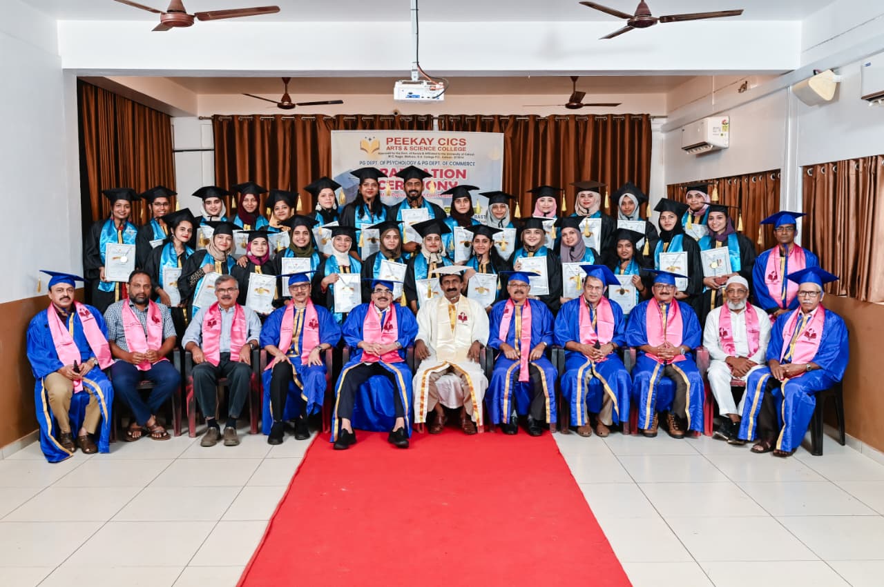 The Graduation Ceremony of the M.Com and M.Sc.Psy. batches was held on 30 th November in all solemnity. The Chief Guest for the day was Honourable Prof.Dr. M.K. Jayaraj, the Vice Chancellor of the University of Calicut. The Principal, Prof. A. Kuttialikutty, presided over the programme, and the Chairman, P.K.Ahamed, addressed the gathering. The graduates were conferred with the degree certificates in the august presence of the Managing Committee, parents, teachers, and friends.