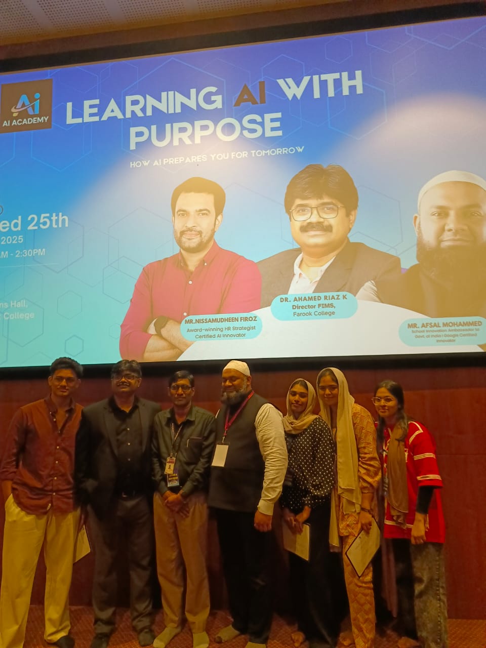 Faroook Institute of Management Studies (FIMS), in collaboration with AI Academy, organized a one-day workshop on "LEARNING AI WITH PURPOSE How AI Prepares You for Tomorrow" on 25th June 2025 at Parisons Hall, Farook College, Calicut.The workshop was attended by a few staff and students from the department of Commerce and Computer Science.