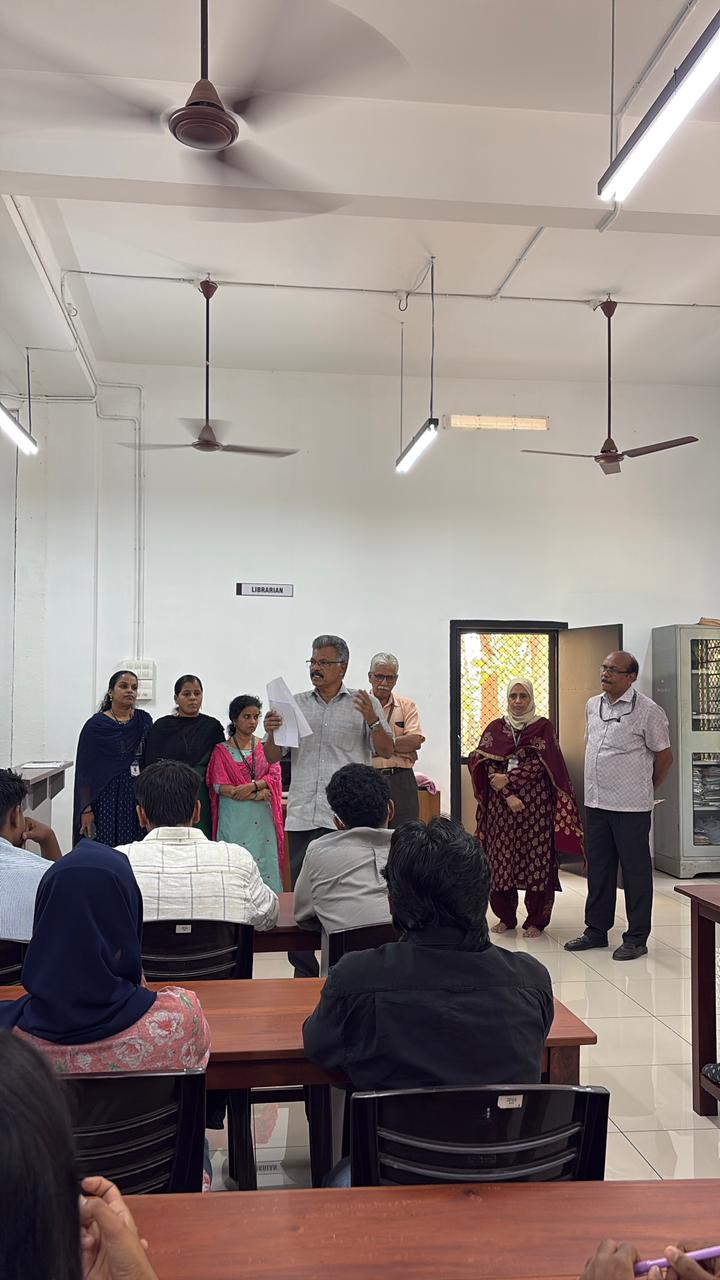 The College Library, in association with the Department of English, organized an inspiring session titled “Ignite Your Future: A Strategic Orientation for Aspiring Students” on 30th October 2025 at 10 a.m. in the Conference Hall. The resource person, Mr. Abdul Latheef K, Librarian, Department of Zoology, University of Calicut, guided students on effective strategies for academic and personal growth. His engaging session emphasized goal-setting, time management, and resource utilization. The interactive discussion motivated students to plan their educational journey with purpose and confidence, making the programme both enlightening and thought-provoking.